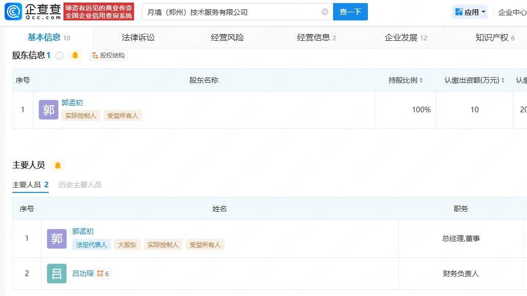 据悉,原“死了么”APP由月境(郑州)技术服务有限公司开发,定位为轻量化独居安全工具,仅在ios上架。企查查APP显示,月境公司成立于2025年3月,由郭孟初担任法定代表人、总经理职务,创始人吕功琛任财务负责人职务。